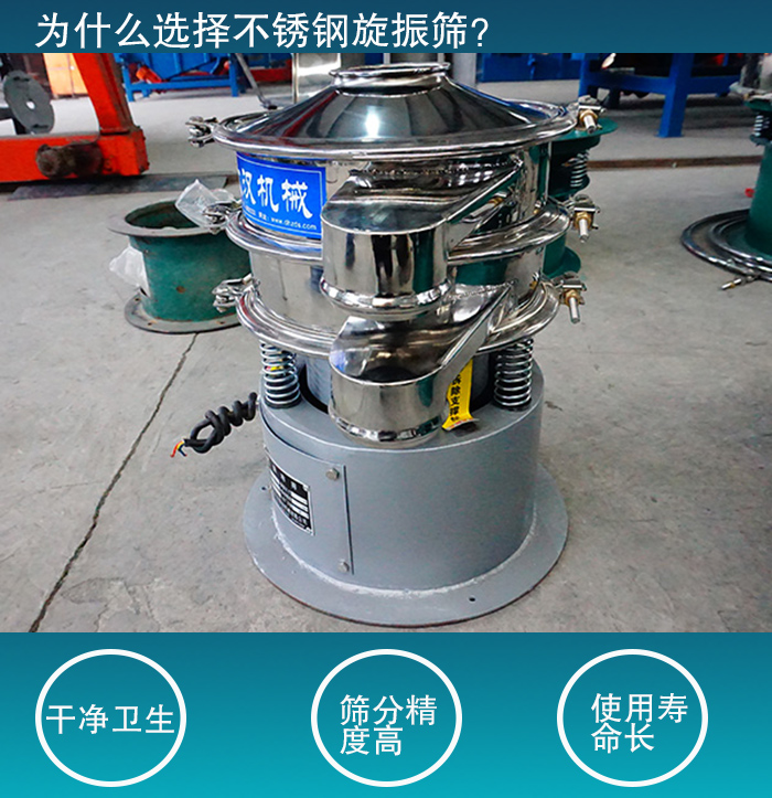 不銹鋼振動篩廠家304/316L不銹鋼材質,耐200℃高溫、防腐防蝕、耐酸耐堿